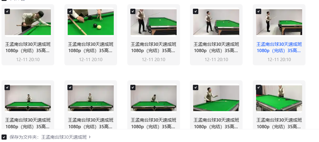 最近很多人在找这套台球教程,资源非常的珍贵,保存到自己网盘自学或者知识变现都是非常不错的!
